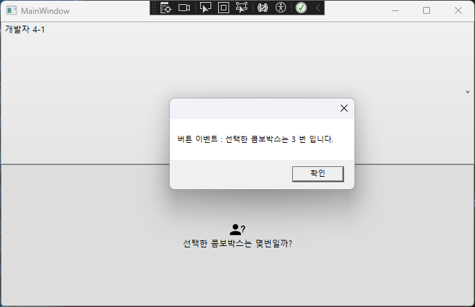 MessageBox.Show("콤보박스 이벤트 : 선택한 콤보박스는 " + ComboboxIndex + " 번 입니다.");
