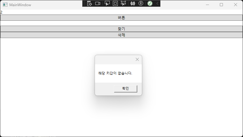 MessageBox.Show("해당 키값이 없습니다.");