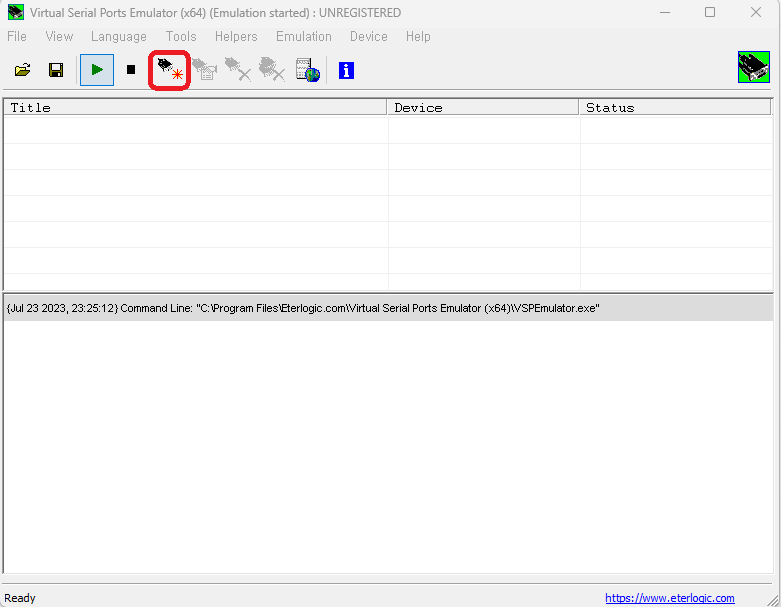 6. 완료 후 선택한 시리얼포트의 Status가 Ready인 경우 시리얼 연결 준비가 완료되었습니다.