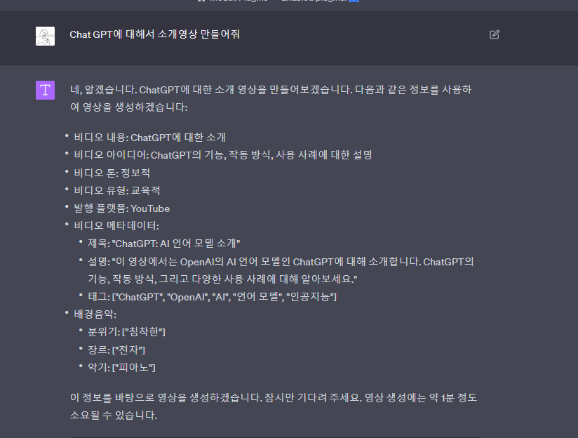Chat GPT Plus를 사용한지 4개월이 넘어가는데요. GPT Plus에 커스텀기능있다는걸 처음 알았습니다. 다양한 커스텀 기능이 있는데요. Chat GPT로 영상을 만들 수 있다고 합니다. 그래서 한번 해봤습니다. 커스텀의 visla를 활용하였습니다. 우선 GPT Plus 커스텀 기능을 켜보겠습니다. 왼쪽 하단 삼단바를 클릭하 Settings & Beta를 클릭합니다. Beta features 클릭하여 Plugins를 켜줍니다. GPT-4에서 Plugins를 클릭합니다. 3.5, 4사이에 새로운게 생겼습니다. 여기서 원하는 기능을 다운받아서 활용하시면 됩니다. 저는 Visla플러그를 다운받아 ChatGPT에 대해서 소개영상을 만들어 달라고 했습니다. 실제로 컷을 편집하거나, 다운로드 할 수 있습니다..